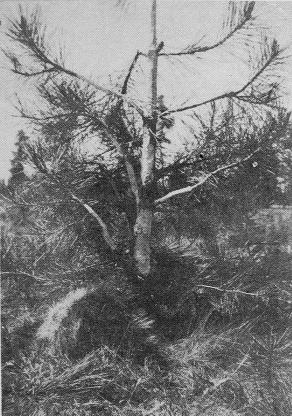 ![]() Showing one of 114 young pines damaged by porcupines on 15 acres. |