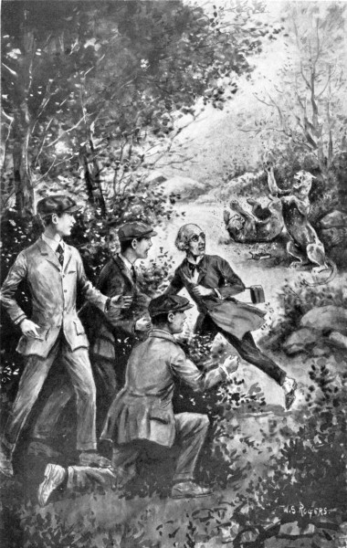Out of the cabin, in the sunset glow of the evening, strolled Professor Snodgrass. He saw the sacks piled on a bench. Springing toward one he cried:
