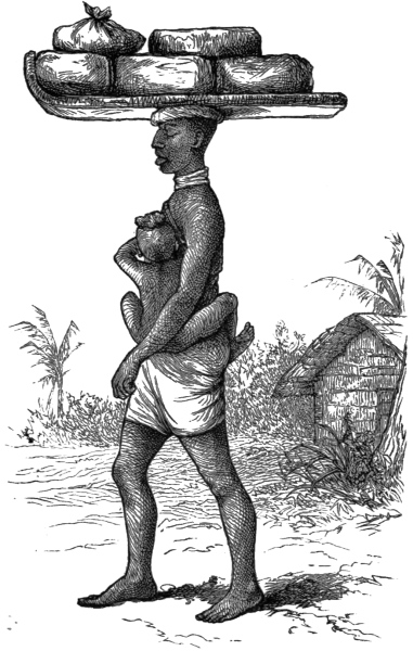Another custom helps us. When a slave has a bad master, who ill-treats him, and who may, perhaps, intend to sell him on the coast, the slave will run away to a chief who has a good name in the country, and tell him that he has come to be his slave. If the chief is willing, he orders a goat to be killed; the chief and the slave eat goat together; the covenant is made, and the new slave is called a ‘goat.’ His old master hears that his slave is with the other chief, and comes with bluster to demand him back. The new master refuses to give him up in spite of all threats, and finally the old master is obliged to accept a fair price. Slaves thus obtained are much esteemed, for they are generally faithful, and having thus made their choice, are not likely to run away again. Sometimes free people in trouble will thus become slaves for protection.