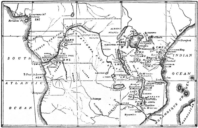 MAP OF MISSIONS IN CENTRAL AFRICA. (larger)