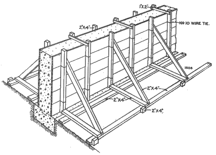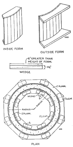To find the quantity of cement, sand, and gravel, multiply the amounts for 1 cubic yard, indicated in line 7 of Table 1, by 103/4, and it will be found that 65 sacks of cement, 4.83 cubic yards of sand, and 9.56 cubic yards of gravel are necessary to build the wall.