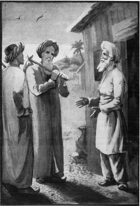 One day they were approaching a very populous city where a devout Hindu King resided, and the “Guru” said to his disciples, “I am much fatigued by the journey; go you all into the city and buy bread, and return to me here,” for he had determined to rest under a large clump of trees just outside the city walls.