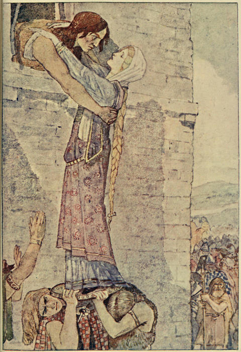 Torfrida paused in her walk when the first notes fell upon her ear. She heard the song right through and smiled sadly and wept a little, and then turned swiftly and ran through the green bushes and threw her arms round the tall minstrel with a little cry of joy. And when she had found her tongue she said—