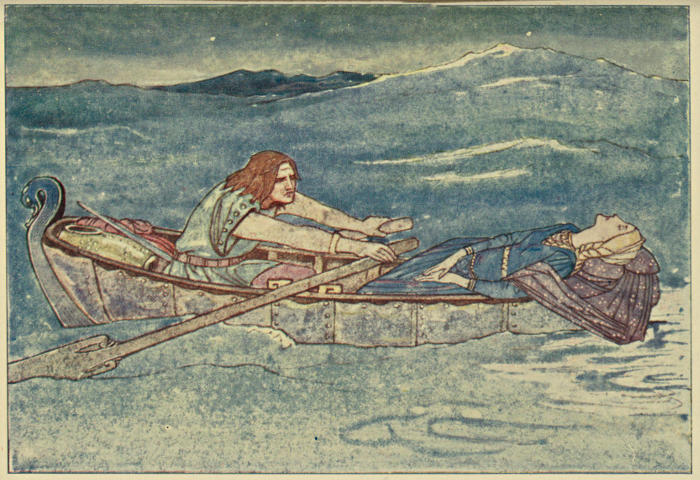 And then Sigmund sent for the priest who dwelt with them, and he was wrath and forbade her trysting with Feargus, and they kept her a prisoner[13] in her room until such times, said her father, as she promised to abandon her lover.