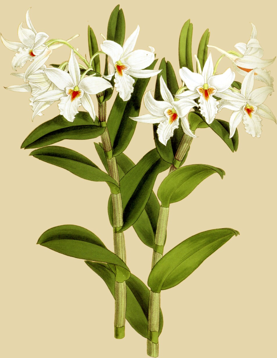 Dendrobium eburneum, Parish MS.; Bateman, in Botanical Magazine, t. 5459; Id., Second Century of Orchidaceous Plants, t. 166; André, Revue Horticole, 1883, 132, with coloured plate.