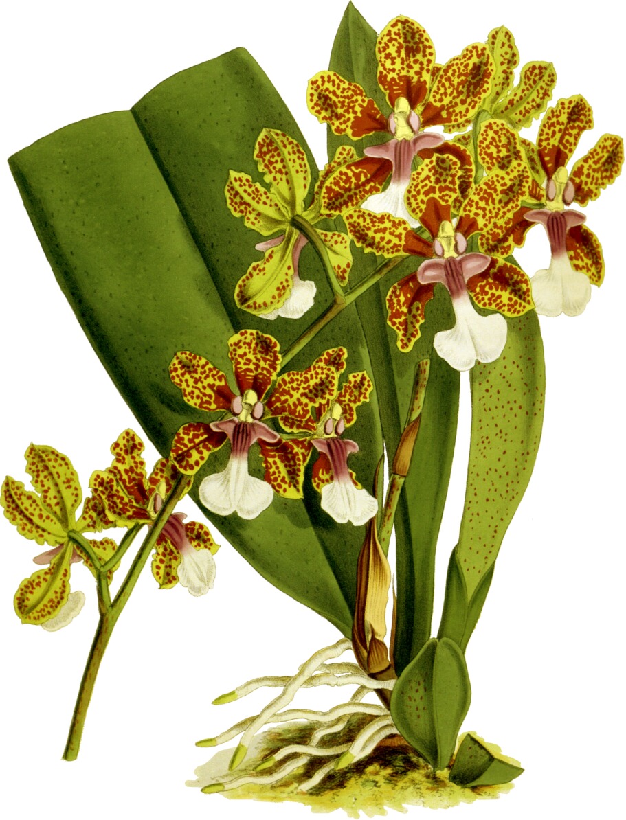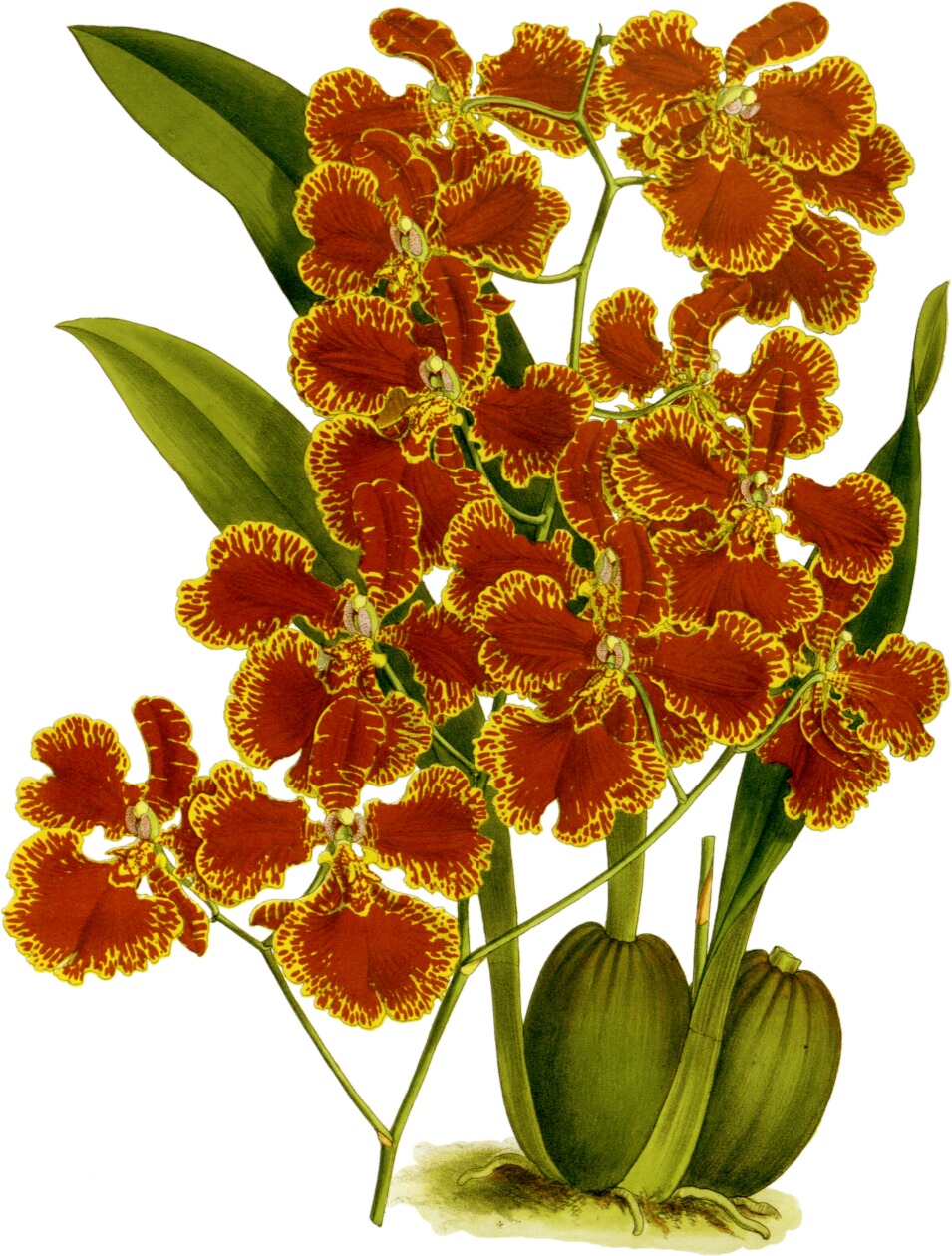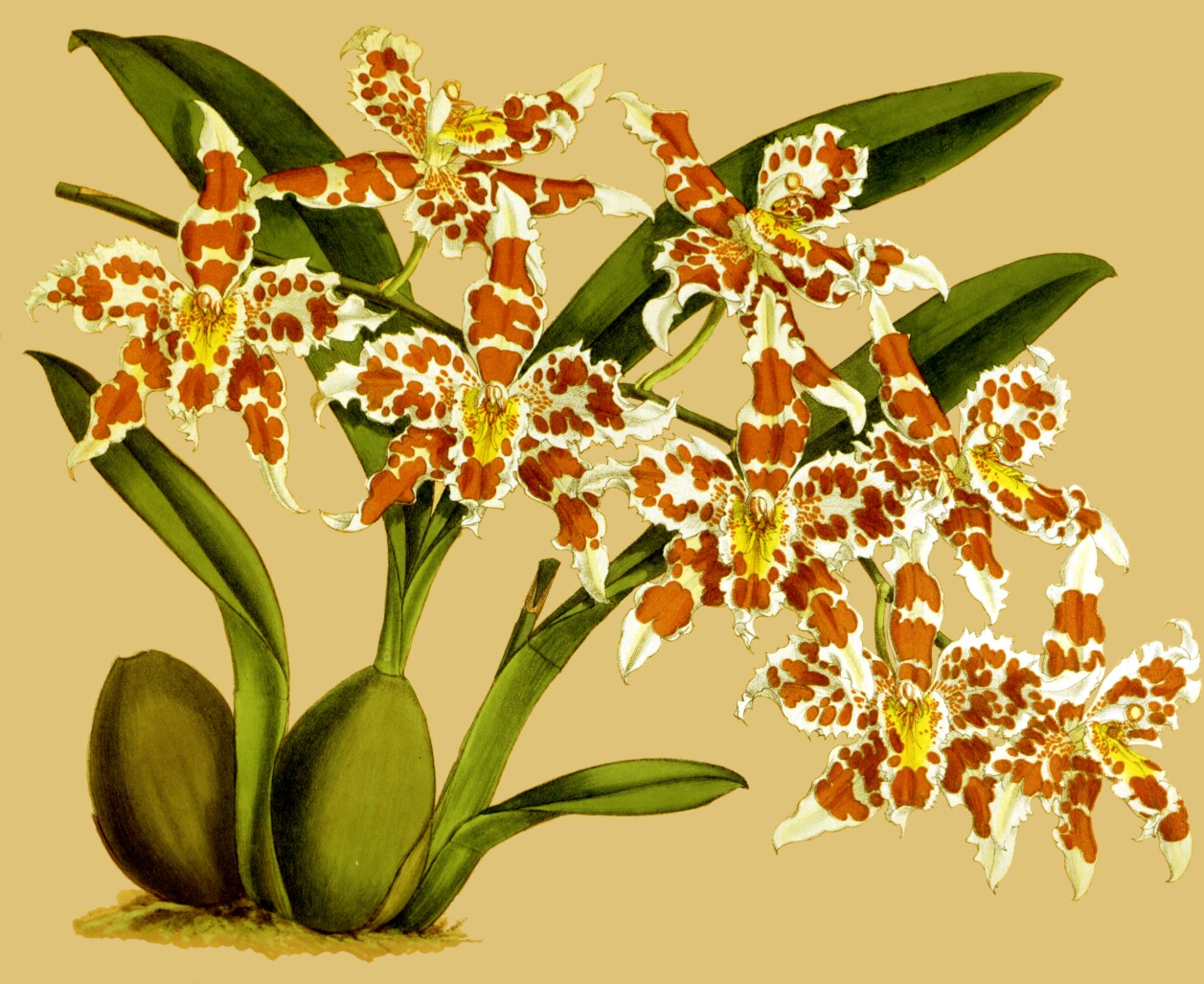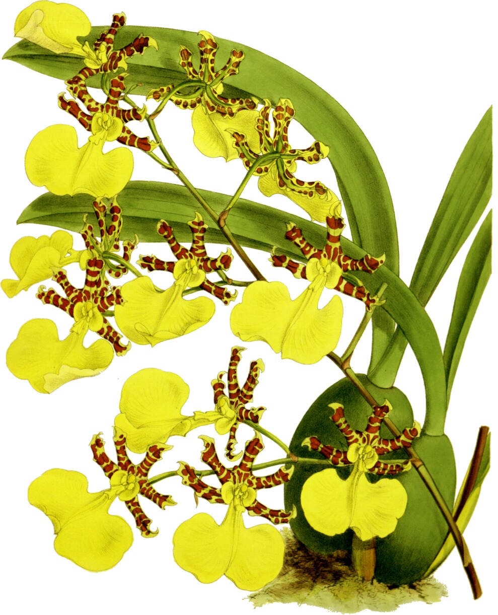 Oncidium Barkeri, Lindley, Botanical Register, 1841, Misc. 174; Id. Sertum Orchidaceum, t. 48; L’Illustration Horticole, t. 2; Paxton’s Magazine of Botany, xiv., 97.