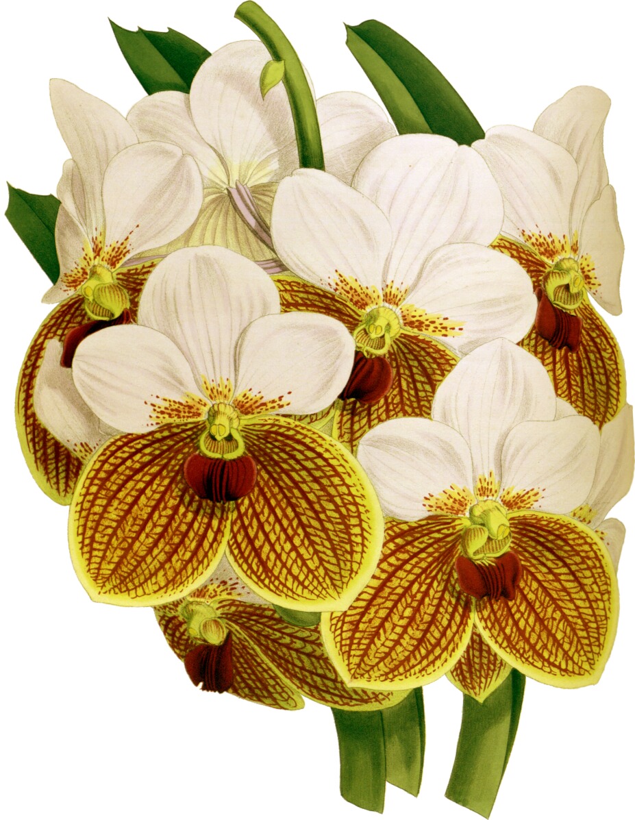 The plant our plate represents belongs to a different species, L. Harrisoniæ, one of the older of cultivated Orchids. The drawing was taken from a specimen 8 bloomed and exhibited by ourselves at the Royal Horticultural Society’s Show at South Kensington in April last, and which was deservedly awarded a First Class Certificate for its ivory white flowers with a slight pencilling of purple on the lip. The typical L. Harrisoniæ although one of the oldest inhabitants of our stoves is well worth cultivating more extensively; it has creamy white flowers, with a purplish lilac lip, the flowers being larger, and the plant more robust in growth than in the present variety, eburnea, which, however, blooms more freely and retains the purity of its whiteness for some time. There are some yellow-flowered species, such as L. cruenta and L. aromatica, which are worth growing for their colour and fragrance.