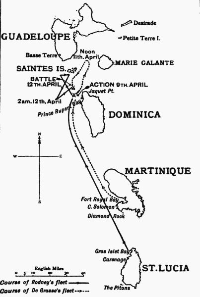 Chart showing Rodney's pursuit of De Grasse
