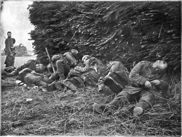 semblent dormir, dans des poses naturelles, au pied d’un tas de bois.