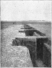 ![]() Une tranchée-type d’infanterie. ![]() Lecture sur place de la carte. |
