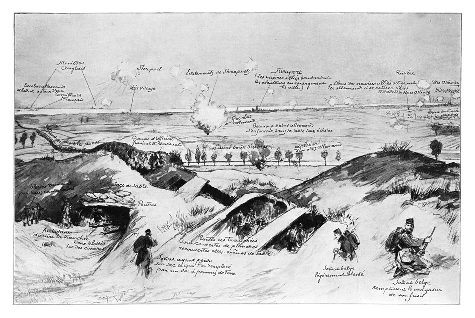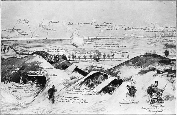 Les Allemands ont d’abord porté leur principale action sur les bords de l’Yser, entre l’embouchure du petit fleuve et Dixmude. Grâce à des masses sans cesse renouvelées ils avaient pu franchir le cours d’eau, et même dépasser le chemin de fer en occupant Ramscappelle et Perwyse. Les troupes belges ont eu recours à la mesure suprême des inondations: rompant les digues de l’Yser, tendant les barrages, nos amis ont amené le flot insidieux dans la plaine basse des polders. En même temps, aidés par nos troupes, ils enlevaient les villages occupés, et, sur les chaussées dominant les eaux, ont refoulé les colonnes ennemies du côté opposé, en leur infligeant des pertes considérables. Aux dernières nouvelles, Belges et Français avaient à leur tour traversé la rivière et se portaient vers la route d’Ostende à Dixmude où déjà serait parvenue à Leffinghe une colonne qui longea les dunes, tandis qu’une autre occupa Lombaertzyde le 3 novembre. Nous sommes donc près d’Ostende.