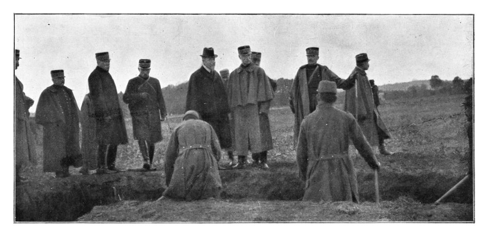 ![]() Le Président et les généraux sont descendus au fond d’une tranchée. |
