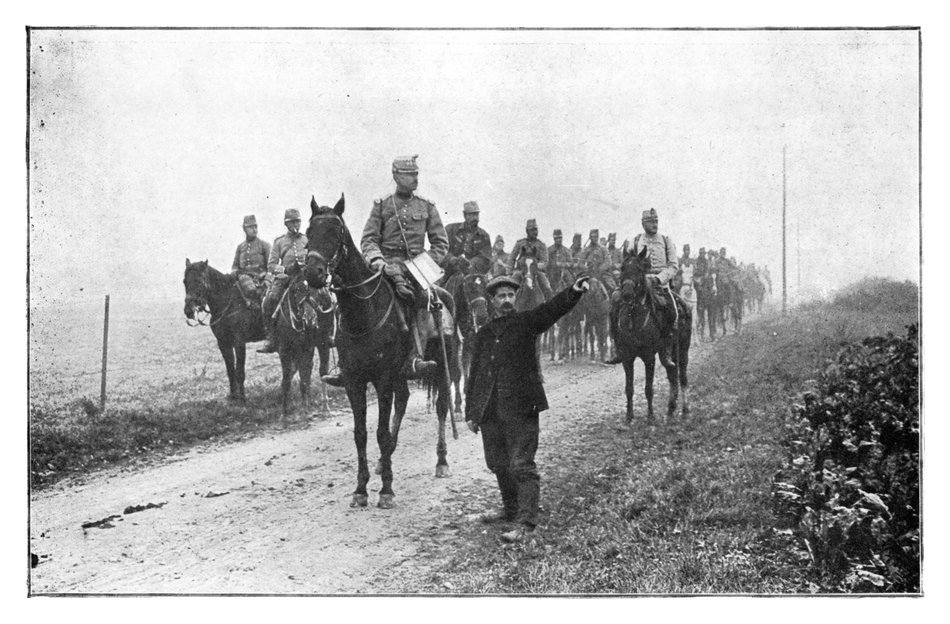 Et ce sont toujours ces mêmes anonymes qui, entre les chevaux des uhlans, ont suivi à pied, ont été conduits hors de la ville nu-tête, au vent du désastre, comme dans les peintures du moyen âge, qui ont été menacés du fusil, de la corde et du revolver, que l’on a mis en joue et que l’on a relâchés... quand on a vu qu’ils n’avaient pas peur.