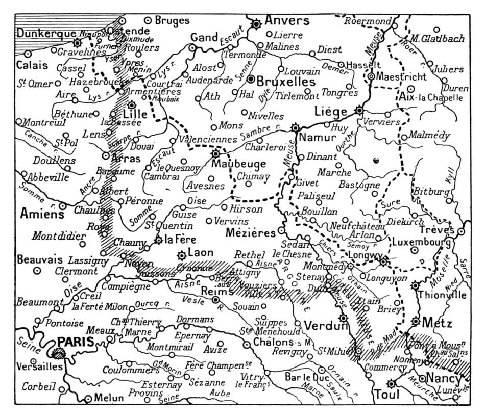 Contre le rideau ainsi avancé vers l’Est, les Allemands ont dirigé de furieuses tentatives, pendant trois jours; jusqu’au 3 novembre, tous leurs efforts se sont brisés contre la ténacité de nos soldats appuyés par notre puissante artillerie; même, le 4, nous faisions un nouveau pas vers l’Est.