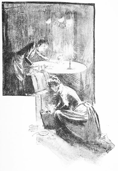 The advantages of an introduction were shown in the effusion of the proprietor’s greeting, and under the ministrations of Alphonse, the head waiter, we revived. We were late for the ordinary dinner, and for some time the clean, electric-lighted dining-room had us for its only occupants, as we sat in a trance of repose and quietness, while Alphonse, with his decorous hooked nose and clerical black whiskers, gave us his serious and undivided attention. It was not until after the delicious omelette au rhum had come in, in its winding-sheet of spectral blue flame, that a party entered and took possession of a table near us. From the unhurried way in which they{223}