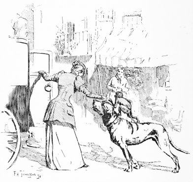 A chorus of horror arose. The pallid face and weak saucer eyes of the timid aunt appeared furtively round the straw rim of the chair, and she murmured, ‘Mees! Mees!’ in tones of faint reproof. (I had forgotten to say that as the dog was supposed to be{193} an English terrier, he was called ‘Miss,’ a generic term in France for the British dog, irrespective of size or sex.) Madame de Q. and the spotty cousin offered polite condolences; Monsieur de Q. aimed some opprobrious epithets at the offender instead of the kick that he so richly deserved; and Mdlle. Hortense in an instant whirled me out of my chair, through the drawing-room, and into a bedroom, there to take off my own skirt and endue one of hers, while mine was sent to the kitchen to be washed and dried. It took a fair amount of philosophic calm to walk back to the verandah in a full white calico skirt some four inches too short for me, and it was a relief to find that a number of fresh visitors had arrived, and that my entrance was consequently unobserved. Almost immediately afterwards, it was suggested that we should be taken to see the park, and I crouched down the verandah behind the crowd, trying to decrease my height by those uncompromising four inches, and painfully conscious that all the gentlemen of the party had remained behind,{194} and were watching our exit with some interest. ‘Now ces messieurs are content,’ said Mdlle. Rosalie, dropping behind to talk to me. ‘They will be able to talk of nothing but the vintage till we return—ça m’agace!’