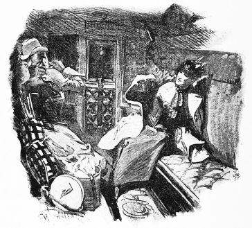 After these agitations, the corner seats of a railway carriage at Victoria had a restful luxury about them that was almost stagnation. The consciousness of two portmanteaus registered to Bordeaux almost made up for the cumbrous row of hand packages that{18} squatted in the netting; and the half-hour of waiting for the train to start was a period of soothing inaction scarcely ruffled by the slow filling of the carriage to its limit of five on each side, and merely moved to a languid enjoyment by the inexorable determination of the latest comers, a bride and bridegroom, to sit next to each other irrespective of all previous arrangements of old ladies and their baskets. They had about them the well-known power of making their innocent and well-meaning fellow-creatures feel in the way and in the wrong, and the eyes of the carriage sought the windows or the ceiling as if by word of command when, after the settling down of glowingly new bags and rugs was completed, the latest comers leaned back and gazed into each other’s faces with an unaffected ecstasy, the fact that both wore gold-rimmed spectacles imparting a sort of serious lustre to their mutual regard. The gaze seemed to us to last most of the way to Dover, except at those moments when a glance or two was given to their fellow-passengers, a glance of almost compassionate{19} wonder that people so uninteresting and so superfluous should be alive. It gave us an instant of pleasure when some time afterwards on board the boat we saw that the bride’s fringe was blown into dejected wisps, and that her groom’s nose was blue and his face pinched.