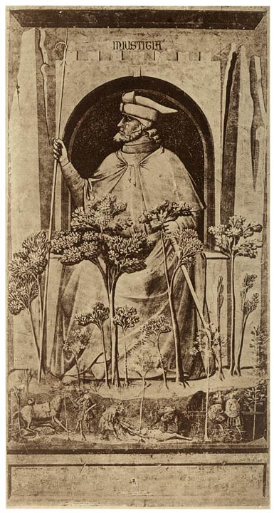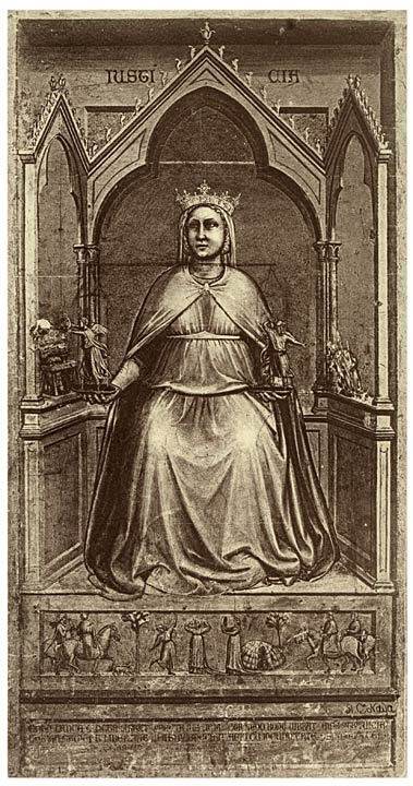 Perhaps, in like manner, if in this garden of the world you would leave off telling its Master your opinions of [11]Him, and, much more, your quarrelling about your opinions of Him; but would simply trust Him, and mind your own business modestly, He might have more satisfaction in you than He has had yet these eighteen hundred and seventy-one years, or than He seems likely to have in the eighteen hundred and seventy-second. For first, instead of behaving like sparrows and robins, you want to behave like those birds you read the Gospel from the backs of,—eagles. Now the Lord of the garden made the claws of eagles for them, and your fingers for you; and if you would do the work of fingers, with the fingers He made, would, without doubt, have satisfaction in you. But, instead of fingers, you want to have claws—not mere short claws, at the finger-ends, as Giotto’s Injustice has them; but long claws that will reach leagues away; so you set to work to make yourselves manifold claws,—far-scratching;—and this smoke, which hides the sun and chokes the sky—this Egyptian darkness that may be felt—manufactured by you, singular modern children of Israel, that you may have no light in your dwellings, is none the fairer, because cast forth by the furnaces, in which you forge your weapons of war.