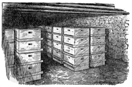 Bees should be put into the cellar after a good flight in late November, or earlier in the more northern localities. They should be removed when fresh pollen and nectar are available, usually about the last of March.