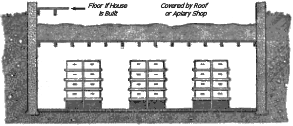 If the bees are kept in apiaries of perhaps 100 colonies and if a cellar is built for each apiary, then it is possible to build a cellar of just the right capacity. If a central cellar is built for all the apiaries and the bees in outapiaries are brought into the home apiary for winter, the beekeeper will wish to build the cellar sufficiently large for future expansion of his business, and beekeepers are finding out, that they can keep many more colonies of bees than they formerly thought possible. Perhaps the better plan is to have a cellar in each apiary.