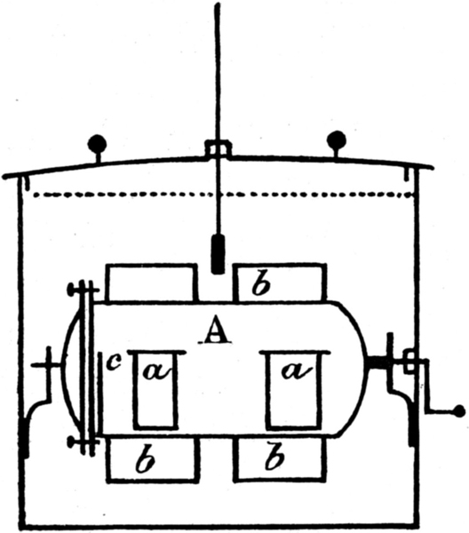 | 70. | Elektrischer Ofen im Betriebe. | Moissan, Der elektrische Ofen. Deutsch von Zettel. Berlin. 1900. Abb. 3. |