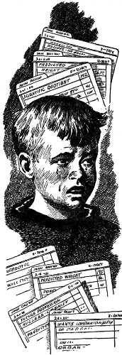 That night, after Donnie was in bed, Mr. Ames went to his study and pulled out the boy's file. It explained what he was fitted for, what abilities he had inherited, and what his primary training included. Mr. Ames noted sadly that the boy's Scientific Quotient was 142, well above normal, and that he would stand six feet tall and weigh close to 195 pounds when fully developed.