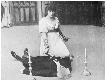 Her insistence on fulfilling her contract to play in this cinema play was, according to the doctors, the cause of her last collapse. It was more than her strength could stand. She was really dying when she faced the camera on the last two occasions. But her indomitable will triumphed over her body almost to the last, and, until the dreadful malady paralysed her, she continued acting.
