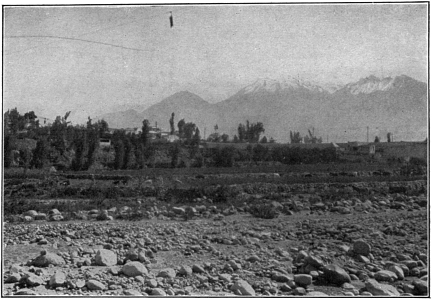 From the outskirts of the city one has a superb view of the Andean Range. The lofty mountains extend in an unbroken, snow-capped line as far as the eye can see. Aconcagua, the peer of the Argentine Andes, may be seen from a point several miles south of Mendoza, lording over his lesser satellites in a majestic, awe-inspiring way. The shifting mists, cloud-banks, and intermittent sunlight playing on the white peaks present an ever-varying series of pictures that are unexcelled for beauty and grandeur.