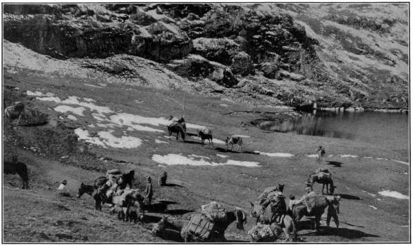 The weather grew rapidly colder and rain or snow fell almost daily. A mantle of white completely covered the Andes stretching in an unbroken range to the west of us; the picture presented in the early mornings was one of great beauty, as the sun lit up the snowy summits with a rosy light, while a thin bank of purplish vapor enveloped the foot of the range in a soft mantle of regal splendor.