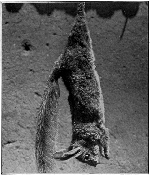 While homeward bound we crossed a small open place where not a plant grew, and the sand shimmered with a dull glow. Coming directly for us was a white, plume-like, waving object which could hardly be distinguished from its surroundings, but when both the judge and the secretario shouted Zorino I knew enough to shoot, and shoot to kill. We waited a moment to see whether the animal was dead, then approaching carefully, I picked up a fine skunk. Just then his mate put in an appearance on the edge of the opening, and there was no choice but to add her to the collection. When it came to carrying home these additions to the bag, even the Indian balked, so I tied them to the end of my gun-barrel and carried them in this manner. Early the next morning the entire town came to see the Zorinos; the scent had penetrated into the furthermost hut, and they had unerringly traced it to its source.