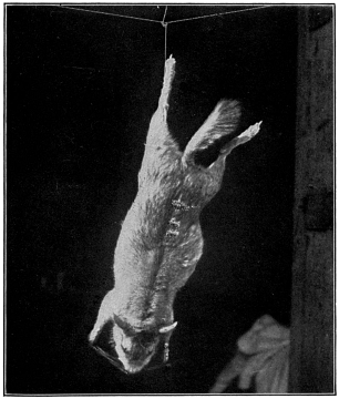 It was not long before we saw another of the animals. It being my turn, I began to stalk, profiting by past experience. The creature was outlined clearly, and frequently it sat up to look about; then the white breast showed distinctly. When the vizcacha sat up, I stopped; when it dropped down on all fours, I crept on. At forty yards I took the shot, and this time luck was with us. When we reached the spot the animal was tumbling about, and the judge yelled not to touch it, as they can inflict serious wounds with their sharp teeth and claws. At this stage of the game the secretario came in for his share of the work; he followed the dancing form in its erratic course, and finally dealt it a blow on the neck with the blunt side of the machete, killing it. It was a splendid specimen, weighing a trifle over eighteen pounds, as we later discovered. It differed from the species found in the high mountains in having a shorter tail and coarse fur, besides being much larger; the appearance of the former had always brought to my mind a combination of a squirrel and a rabbit; this creature was, well, simply a vizcacha; there is nothing else like it. The color is slaty-blue on the back and white underneath.