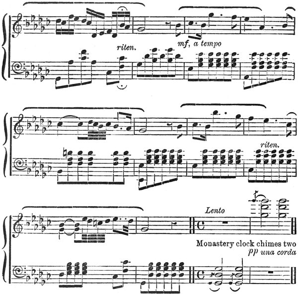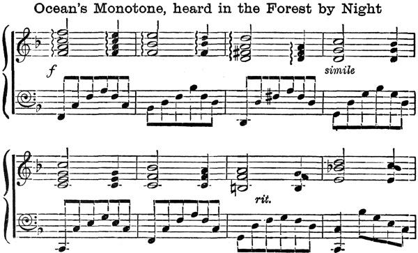 I often hear their old songs as the winds and birds sing in the windy poplars, in the green woods and English fields. I never go forth in the summer nights but I can hear her shadow-feet pattering down the dusky lanes beside me, and the sweetest songs of far-off romance echo in my ears. Ah! could I catch the beauty of those songs, what a composer would I be. But I can only write down the spindrift of those glorious strains.