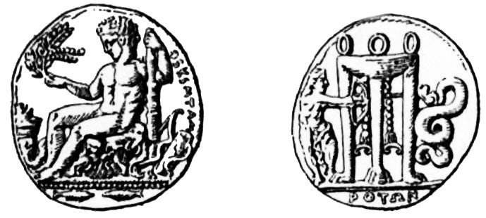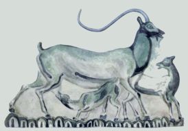 | Painted from the facsimiles in the Ashmolean Museum, Oxford, by Diana R. Wilson, by special permission. See p. 22. According to Greek mythology Zeus was suckled by a she-goat in Crete | ||