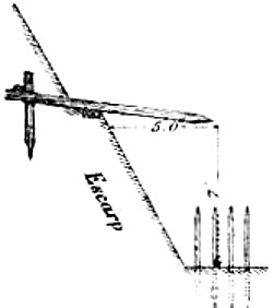 Abatis, or Abattis. A means of defense formed by cutting off the smaller branches of trees felled in the direction from which the enemy may be expected. The ends of the larger branches are sharpened and the butts of the limbs or trees fastened by crochet picket, or by imbedding in the earth, so that they cannot be easily removed. Abatis is generally used in parts of a ditch or intrenchment to delay the enemy under fire.