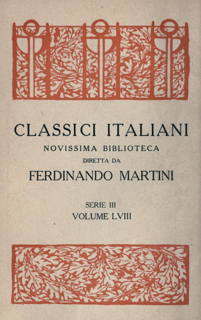 Il favore che ottenne dal pubblico la prima serie della nostra BIBLIOTECA DI CLASSICI, sì da richiederne una seconda edizione già sotto ai torchi, e gli incoraggiamenti che da ogni parte ne vennero al nostro Istituto, ci inducono a proseguire nella impresa, guidandoci con più larghi criteri a maggiori intendimenti. I quali forse non consentirebbero che alla raccolta si mantenesse l'antico titolo di BIBLIOTECA DI CLASSICI; ma noi lo manterremo: chè se non a tutti gli scrittori ai quali daremo luogo, si conviene quell'appellativo com'è comunemente inteso, tutti meritano d'essere divulgati e ancor letti. E la Biblioteca nostra se non di classici, certo di scrittori eccellenti, conterrà così quanto la letteratura italiana ha in tutti i secoli di più pregiato e famoso.