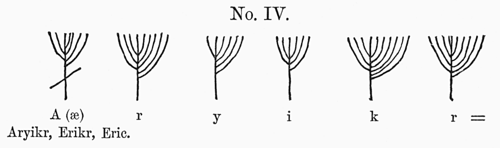 [314] The ordinary runes, I need hardly say, have been shown by Rafn to be derived from archaic Greek; and probably from coins which found their way north during the first centuries of our era.