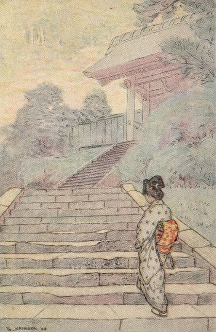 Yuki San was on her way to make good her promise to the gods. Her wooden shoes clicked sharply in the quiet morning air, then hushed as she paused for rest on a broad step. Even the exertion of the long climb had failed to color her white cheeks, but her lips were carmine and her eyes luminous with purpose.