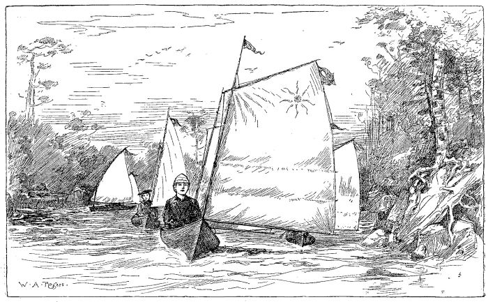 "You stand here, Rube, and pelt her if she tries to come ashore on this side. I'll run for old Harms's boat and head her off. The water's too cold yet for wading."