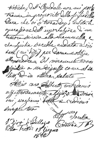 135. Lettera favoritami dalla squisita cortesia della stessa marchesa Luigia Visconti d'Aragona, che ringrazio.