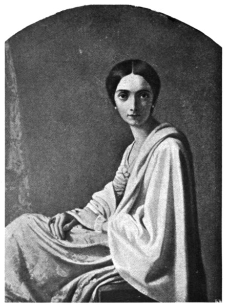 La marchesa Vittoria s'era sposata ben presto in seconde nozze al giovane marchese Alessandro [10] Visconti d'Aragona, ed era andata ad abitare col secondo marito e coll'unica figlia del primo, in un'ala di quel palazzo. E fu là che Cristina, la futura principessa Belgiojoso, sviluppò la viva intelligenza; specialmente l'intelligenza musicale. La madre, innamorata dell'arte de' suoni, ne trasfuse nella figlia il sentimento; e in lei lo accrebbero poscia la Malibran, la Pasta e il maestro Nicola Vaccaj, che visitavano la madre, eseguendo in quelle sale musiche appassionate e gentili, onde tutta l'aria d'Italia allora vibrava.