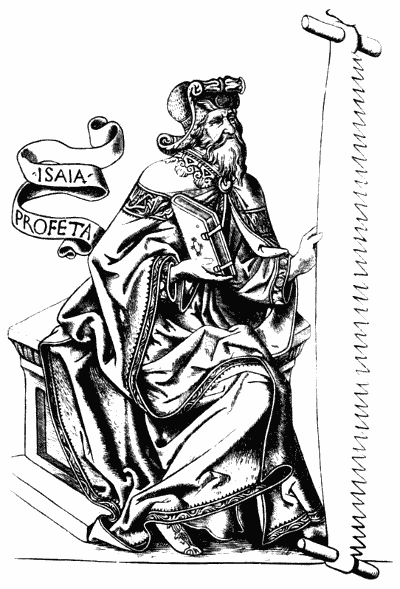 Die Säge ist das Symbol des Propheten Jesaias, den wir hier (Seite 30) mit einer mächtigen Trecksäge mit rundem Rücken sehen. Die technisch wie künstlerisch gleich wertvolle Darstellung ist von einem unbekannten Meister in der zweiten Hälfte des 15. Jahrhunderts in Kupfer gestochen worden[33].