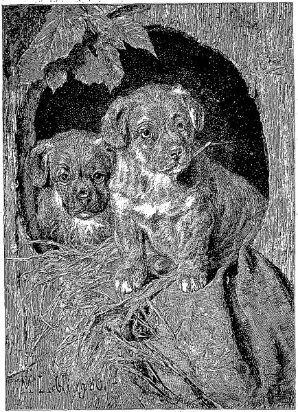 We ran back to the barn and placed them in the manger. Madame Puss looked puzzled for a moment, first gazing at the squirrels, then at us, as if hardly knowing what to do. But she soon decided, and with a comical purr, as if to say, "I suppose it is all right, but those children have certainly changed," she drew the squirrels toward her, and washed first one, then another, and finally went to sleep with her strange family cuddled close to her.