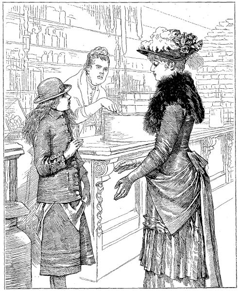 Nan never could overcome her dislike to the shop. She could hardly have told you why it was, but the butter and cheese and eggs in which Mrs. Rupert dealt were unpleasant to her, and as she ran down the dark hall, it was with a little shiver of dislike and of dread lest her aunt wanted her to "mind" the shop during her absence. Marian rather liked to perform this office, but Nan could never see any "fun" in it, and was always ready enough to change places with her cousin on holidays when they were all day at home. Before Nan reached the shop door she heard voices in pleasant though shrill tones, and going in, was a little startled by seeing a fashionably dressed young lady in earnest conversation with her aunt.
