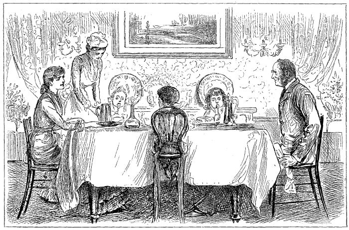 Nan planted her elbows rather more firmly into the table, clutched her curly head with a pair of firm brown hands, and returned to the question of the man and his wine. Marian watched the thin drizzling rain on the garden beds, and Philip read his Robinson Crusoe, regardless of the disorder of shells and minerals about him. For the matter of that, no one of the three young people took special heed of his or her surroundings. Marian did not care; Philip had a boy's feeling that he could not help untidiness; and Nan had, after two years' residence there, grown accustomed to the dingy shabbiness and vulgar disorder of her step-aunt's house in Bromfield.