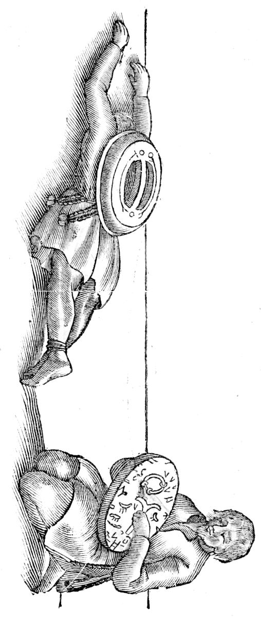 The other buisinesses, which we have not treated of yet, whether they be at home or in journies, belong to both Sexes, and that they may be the better undertaken, men and women wear breeches, and as Joh. Tornæus takes notice, equally undergo all pains and work excepting hunting: by which words exceptâ venatione he doth not deny but men and women have peculiar emploiments. In their travels the master of a family goes first, with his baggage and Rain-deers after him, and next him his wife with hers; in Summer they both walk on foot, in Winter both are drawn in sledges, which I have described in the next page: in these they like children are tied and bound fast with fillets and cords, especially when in hast, having only their hands and head at liberty, and their back leaning against the end. The Rain-deer is not harnessed like an Horse, but hath a strong cloth about his neck, to which is fastened a rope that goes between his fore and hind feet, to the hole in the prou of the sledge. He therefore that drew Olaus Magnus pictures was much deceived, when he made Rain-deers joined to the sledge with traces on both sides, and such a collar about their necks, as is used in other Countries upon their thillers; and in another place two yoaked together drawing a cart with wheels, which is a thing unknown to the Laplanders, and men riding upon them as on a Horse, whereas they never do so, but walk on foot, and carry their goods only on them in dorsers. He that is drawn rules the beast, not with a bridle, but an halter made of Sea-dogs skin tied about his head or horns, fastned to a stick which he holds in one hand, with which he removes the thong to either side, according as he would go or turn: with the other he guides the sledge, for it being round at bottom is still wavering, so that he which rides, must still with the motion of his body, and hand, take care it overturns not, as you may see in the picture. When they thus travel in the Winter, the Rain-deer are bravely adorned with needle work of tin-thred upon diverse colour’d cloth, about[106] their necks and back, and a bell, with which they are mightily pleased. They travell in these at what rate they will; but if upon a remove, alwaies slow, because of the weight of their goods, in which journies the man and his wife go first, and all the family come after. Ziegler saies in 24 houres they can go 150 miles: Herbersternius saies in a day 20 German miles: but ’tis not to be believed that it is performed with one Rain-deer in the day of[107] 12 hours, except the waies be good and slippery, but they ordinarily go 12 14 or 16 German miles in ten hours, which number doubled will make out Zeigler’s opinion: and that not with one Rain-deer which is impossible to out so long, but that it must dy or be left to rest the next day. In this way of travelling the Women are as expert as the men, and Olaus Magnus saies more. As the men and women travel together, so they help one another in fishing, and at baiting time to feed their cattle, which is evident in the Rain-deer, for the women take as much care of them as the men, and equally take the trouble to milk them: and in fishing ’tis manifest; for women in the absence of men, are very intent for some weeks at catching fish, which they gut and dry up for Winter. Their way of catching them is with Nets, and other instruments, as every where else. I know not what Paulus Jovius meant, when he said they have a foolish way of fishing, except he refers to their hooks which are nor of Iron but Wood: they make them of Juniper bent round: these they fasten to sticks, and throw them into the Rivers, and very easily take many large fishes. If they fish with a Cane or Whale-bone, the fisher never knows when the fish bites, but pulls up at a venture. Their way of fishing alters with the season, in the Summer usually with drag nets, between two boats, or else with spears like Tridents, but that they have more teeth. With these they strike pikes, especially when they ly sunning themselves near the top of the Water: they do the same by Night burning dry wood at the prow, by which light the Fish are enticed thither. In the Winter time they thrust nets under the ice to a banck side, and then by a great noise above drive the Fish to them; all these things the Women often do alone, which is the less to be wondered at, because every where in this Country there is a great multitude of Fish. Besides all these, they carry and cleave wood, and make hedges, with such like works, which are so inconsiderable as not to be worthy to enlarge our discourse.