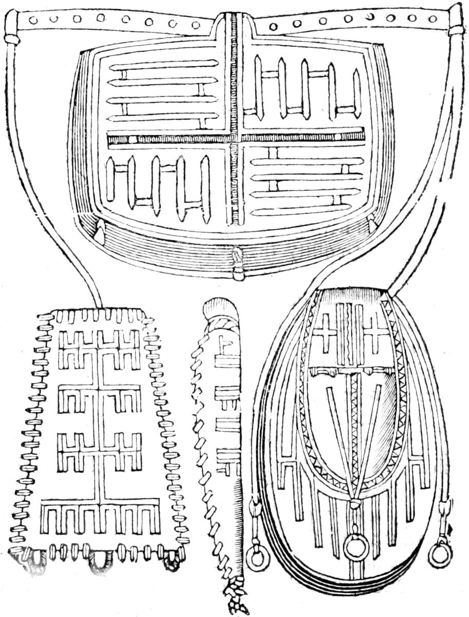 Lastly they have nothing that appears in sight, but it is hereby made very commendable and ingenious. I have by me men and womens scrips, pin-cases, sheaths for knives, very curiously wrought. Of all which, that I might not seem to give too a large commendation of them, I have put the Pictures in the foregoing page.