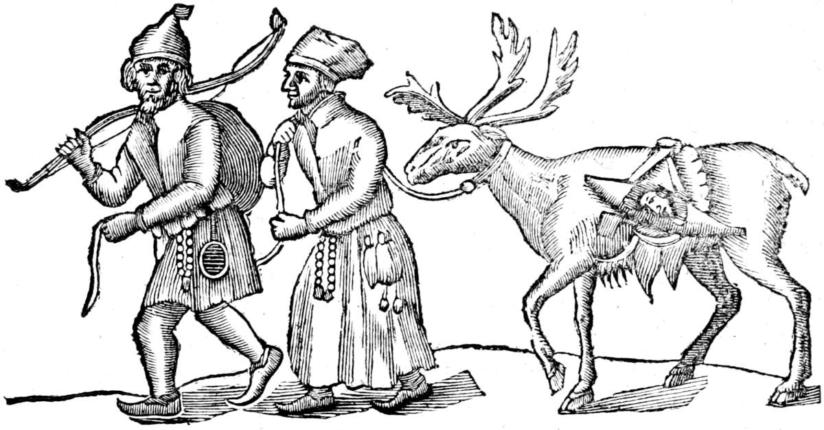 It remains therefore that they came from the Finlanders, who have a certain division or allotment called Lappio. But tho we have shewed that the name and originall of this Nation is not taken thence, it is not to be doubted that they are of the race of the Finlanders and Samojedes, and this is the opinion of most learned men, which may be farther proved by many arguments. First the name of both Nations is the same, the Laplanders in their own language being called Sabmi or Same, and the Finlanders Suoni, which two differ only in the Dialect; and there is a tradition that they had both the same Founder Jumi, who could not well have bin the Author of diverse Nations. We may also observe that their languages have much affinity, tho they be not the very same, as shall be proved at large in a particular Chapter. The Finlanders call God, Jumala, the Laplanders, Jubmal,[16] the Finlanders fire, Tuli, the Laplanders Tolle; they call a hill Wuori, these Warra, and so they agree in many other words. Besides they have bodies and habits alike, both their limbs well set, black hair, broad faces, and stern countenances, and whatever else they have different is very small, or may easily proceed from their diet or Clime, in which they live. Their clothes too are not much unlike; for if we compare the Picture of an ancient Finlander, as it still remains in the Church of Storekyr in Ostrobothnia, where the slaughter of Bishop Henry was drawn at large, with mine of a Laplander in Chapt. XVII. it will appear there is no great difference between them. Lastly they agree in disposition and humor: they are both much given to laziness at home, unless when necessity urges them to work; both, unmoveable from their purpose, both superstitious and lovers of Magick. And therefore Ol. Magn. saies of them both, that they were so skilfull Magicians in the time of their Paganism as if they had had Zoroaster himself for their teacher. In a word whatever Tacitus saies of the Finlanders, now holds true of the Laplanders, that they have neither weapons, horses, nor houshold gods, they live upon herbs, are cloth’d with skins, lie upon the ground, putting all their confidence in arrows, which they head with bones for want of iron. Both the men and women support themselves by hunting, and they have no other defence for their Children against the violence of wild beasts or weather, but Huts or hurdles, which are the security of the old men as well as young. And the same Description which Saxo gives of these, belongs as well to the Laplanders, that they are the farthest People towards the North, living in a Clime almost inhabitable, good archers and hunters, wanderers, and of an[17] uncertain habitations, wheresoever they kill a beast making that their mansion, and they slide upon the snow in broad wooden shoes. Besides all this, the Norwegians and Danes call the Laplanders, Fenni, as may be seen in Petr. Claud. where he divides the Finlanders into Siofinnar, i. e. maritime Finlanders, and Lappefinner; i. e. Lappfinlanders, the same with the Laplanders. This may be collected too from the Russians calling them not only Lappi, but Kajienni, the original of which name can be no other but that they esteem them to be the Cajani, of which name there is a Province now in Finland called Cajania the great.