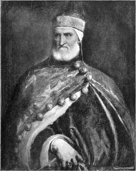 Gegen Ende des Jahres 1554 und in den ersten Monaten des folgenden finden wir Tizian mit der Ausführung des Bildnisses und des Votivbildes des neuen Dogen Francesco Venier beschäftigt. Das waren die letzten amtlichen Dogenbilder, die Tizian malte; denn unter dem Nachfolger Veniers wurde er von dieser Verpflichtung entbunden.