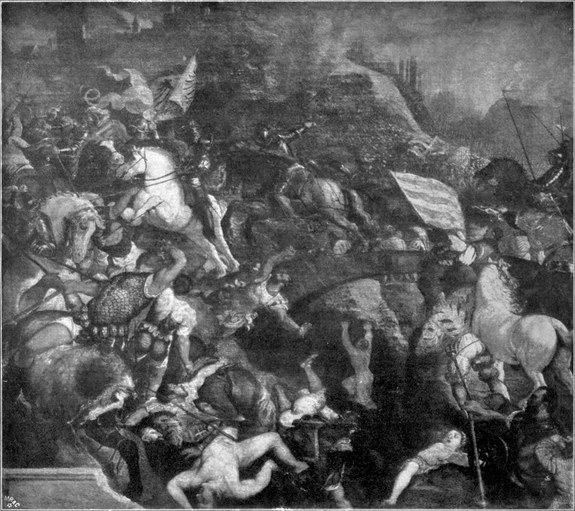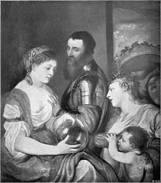 Ein erwähnenswertes Zeugnis von der Unternehmungslust[S. 137] des greisen Künstlers ist es, daß er in einem Schreiben vom 22. April 1560 dem Könige den Vorschlag machte die Siege Karls V. in Gemälden zu verherrlichen. Hauptzweck dieses Schreibens war die Klage Tizians darüber, daß er eine in Genua für ihn angewiesene Summe ebensowenig ausgezahlt bekam, wie vordem das mailändische Gehalt. „Es scheint,“ sagt Tizian ganz offen, „daß Eure Majestät, die über die[S. 138] mächtigsten und stolzen Feinde mit Ihrer unüberwindlichen Macht zu siegen wissen, den Gehorsam Ihrer Beamten nicht besitzen.“