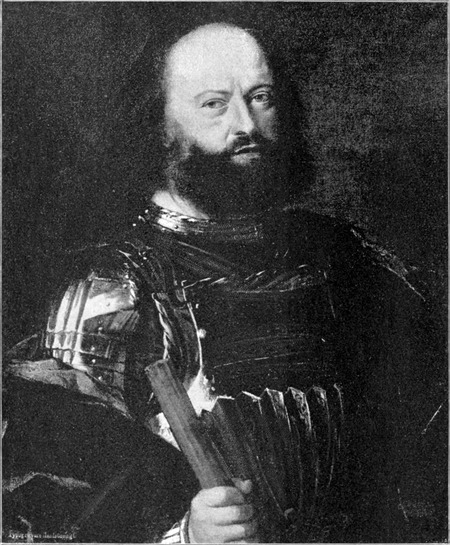 Während Tizian mannigfaltige Phantasien auf die Wände des Fondaco de’ Tedeschi zauberte, mögen seine Gedanken manchmal mit banger Sorge in die Heimatberge hinübergeschweift sein. Denn im Anfang des Jahres 1508 drangen Kaiser Maximilians Truppen in Cadore ein. Pieve mußte, da ein Versuch, der deutschen Artillerie Widerstand zu leisten, aussichtslos erschien, eine kaiserliche Besatzung aufnehmen. Aber mutige Männer, unter ihnen Tizians Großoheim Andrea Vecelli und dessen Sohn, der auch Tizian hieß, hielten, unwegsame Bergpfade benutzend, die Verbindung mit den venezianischen Truppen aufrecht und ermöglichten einen Überfall, der den Rückzug der Deutschen und daraus einen Waffenstillstandsabschluß zwischen dem Kaiser und der Republik zur Folge hatte. Ein Bruder Tizians, Francesco, der ebenfalls die Malerei als Beruf erwählt hatte und sich in Venedig ausbildete, hielt es unter diesen Verhältnissen nicht aus bei der friedlichen Kunst. Er trat als Reiter bei den Scharen des Condottiere Maco von Ferrara ein und erwarb sich bald den Ruf eines tapferen Kriegers. Noch spät erzählte man von[S. 18] seinem Zweikampf mit einem deutschen Hauptmann im Jahre 1509. Erst nach längerer Zeit kehrte er auf Tizians Zureden zur Kunst zurück.